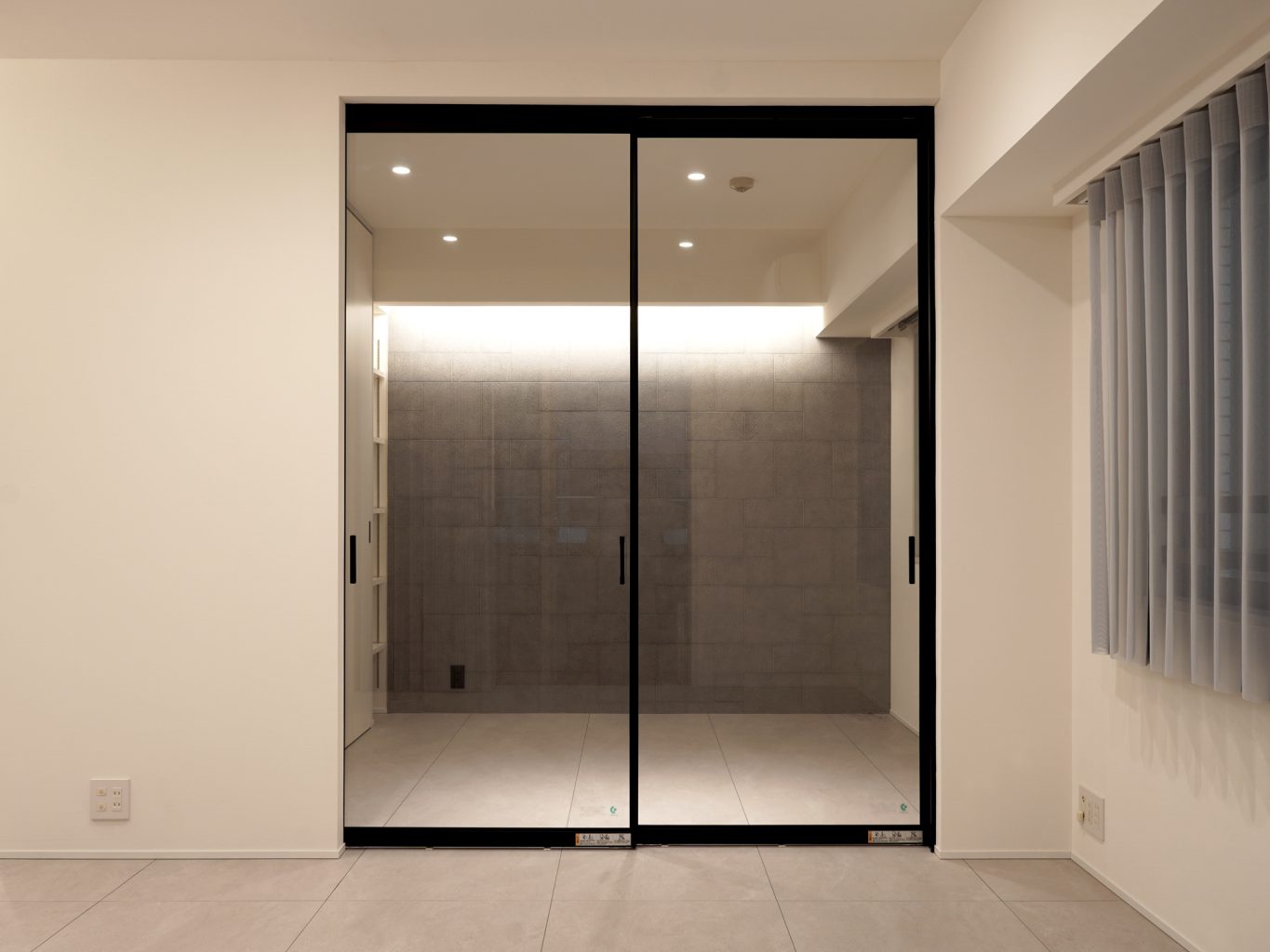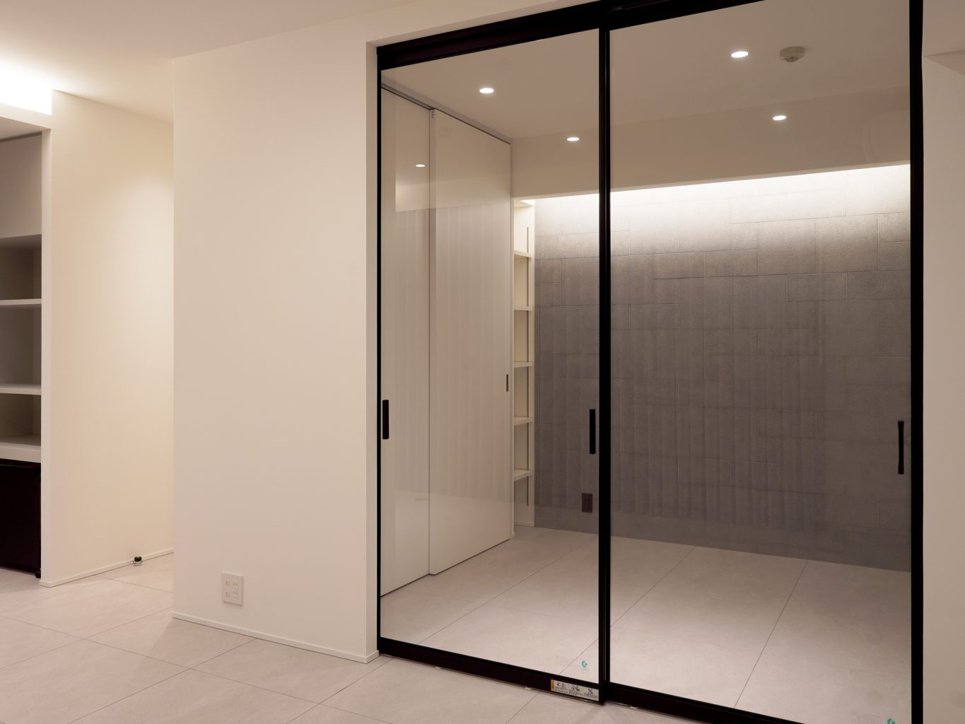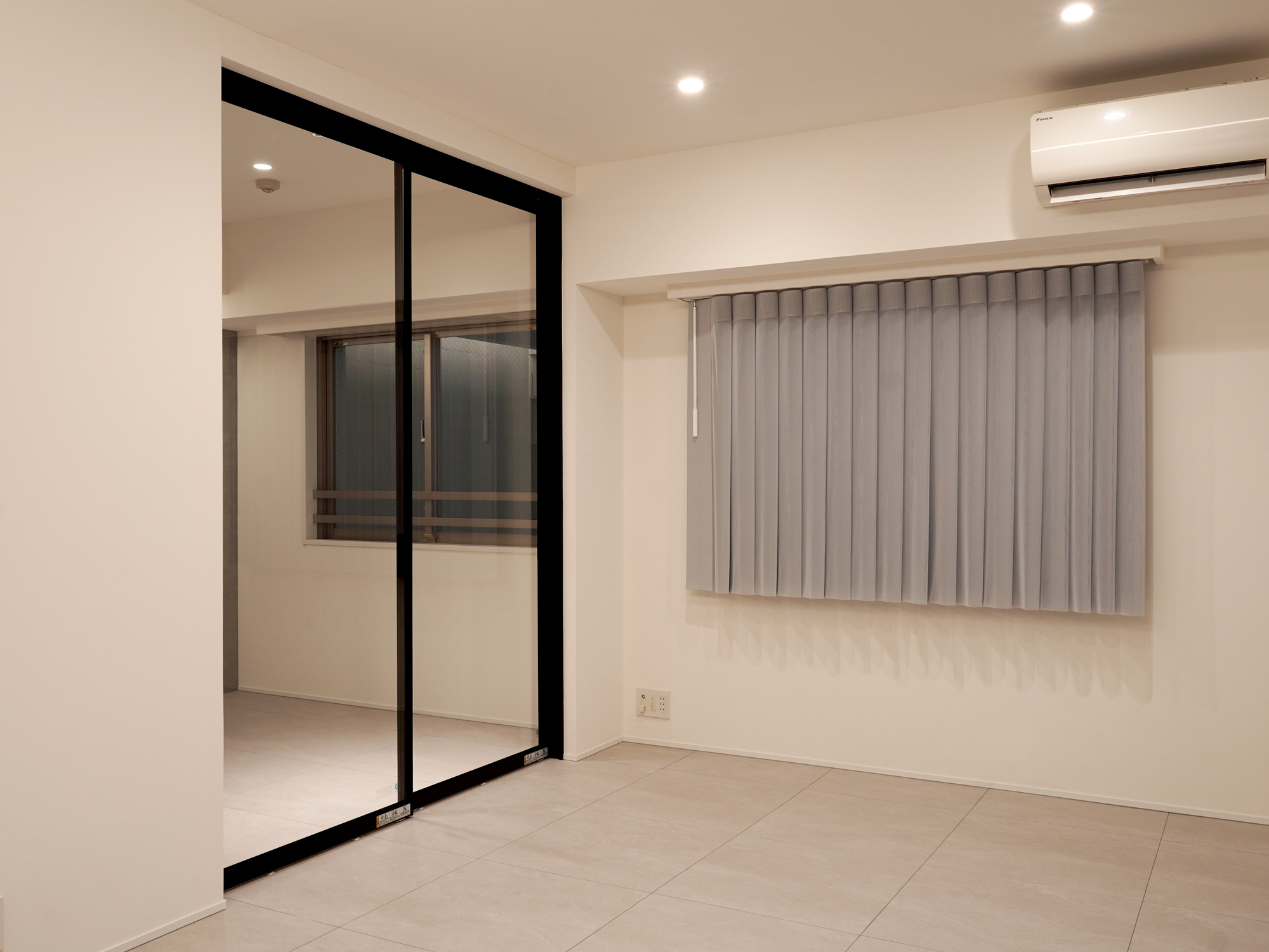 そして、リビングと寝室につながりをもたらすスタイリッシュなガラス扉を配置。空間を広く感じる透明な仕切りの効果によって、お部屋全体に開放的な印象をプラスしました。