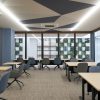 スポットライトを吊るす配線ダクトのレイアウトは、シンメトリーな格子状にレイアウト。既存設備や大梁との取り合いの調整が難しかったです。