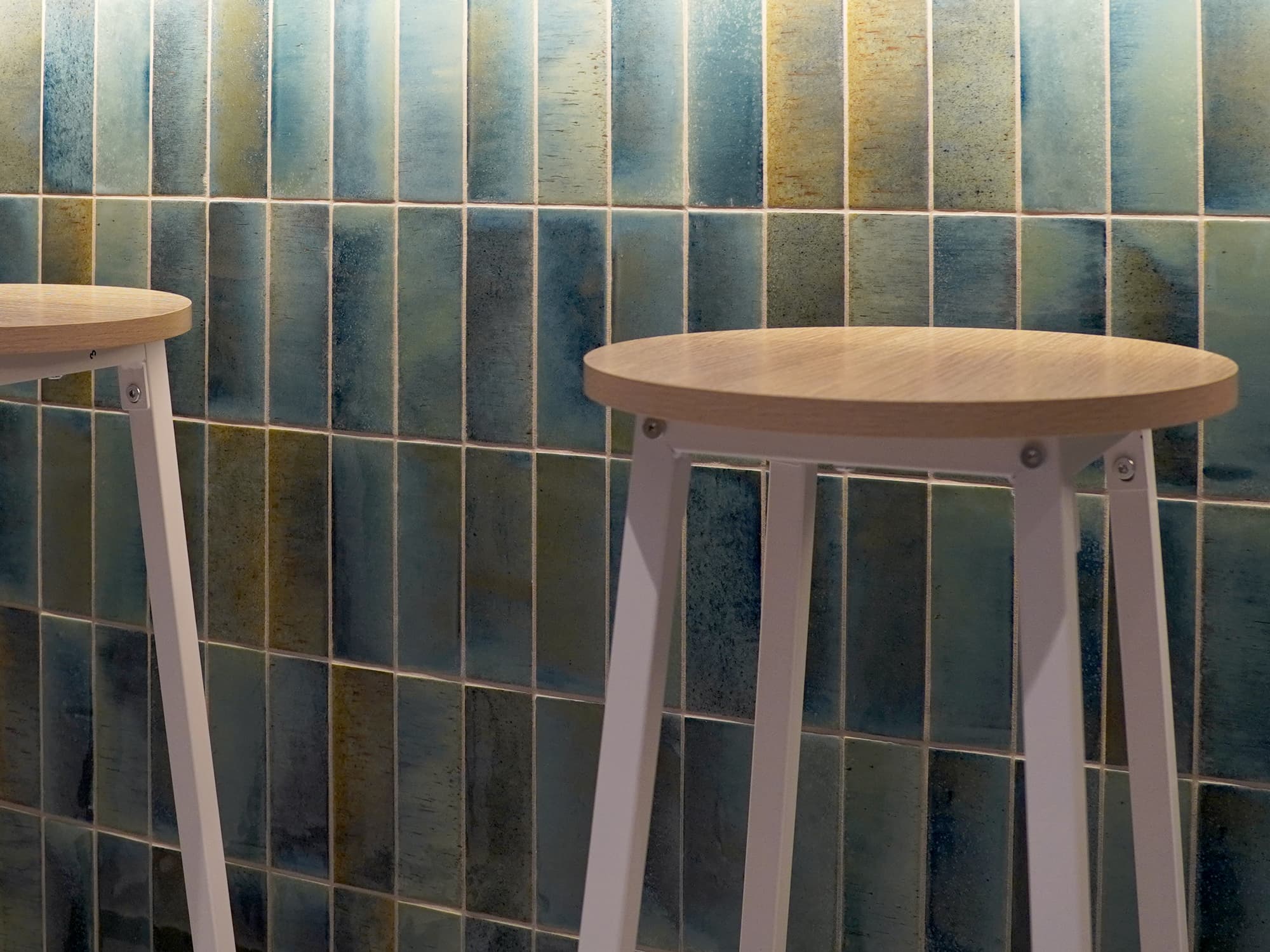 店舗のキーカラーである、少し緑がかった青色は、茅ヶ崎の海や里山からインスピレーションを得ました。